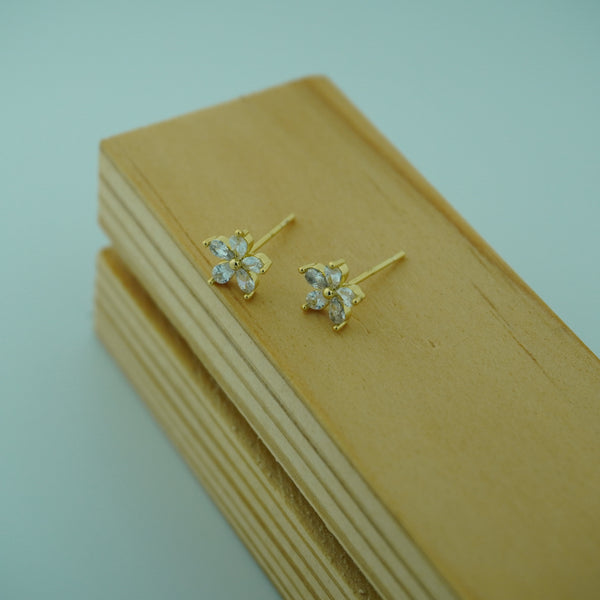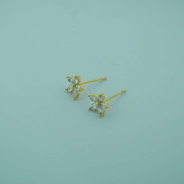 Embrace delicate charm with the Dainty Floral Stud Earrings with Marquise Cut CZ Stones. Featuring marquise-cut cubic zirconia petals in a radiant golden finish, these earrings evoke timeless elegance and femininity.