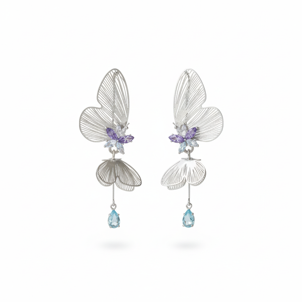Make a bold yet graceful statement with the Lilac & Aqua Butterfly Statement Earrings. Featuring delicately crafted filigree wings adorned with sparkling crystals, these earrings embody transformation, beauty, and artistic charm.