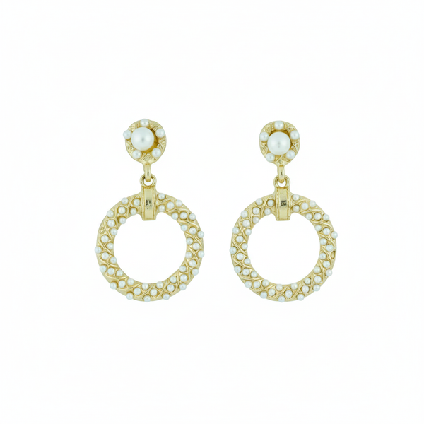 Elevate your style with the Pearl & Pave Earrings. Featuring lustrous pearls paired with dazzling pave crystals, these gold dangle earrings exude timeless charm and refined sophistication.