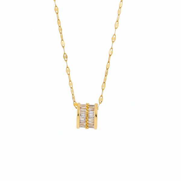 Add a touch of modern sophistication with the Diamond Cylinder Charm Necklace. Featuring a chic cylinder pendant adorned with baguette-cut cubic zirconia stones, it blends clean lines with dazzling sparkle for a refined look.