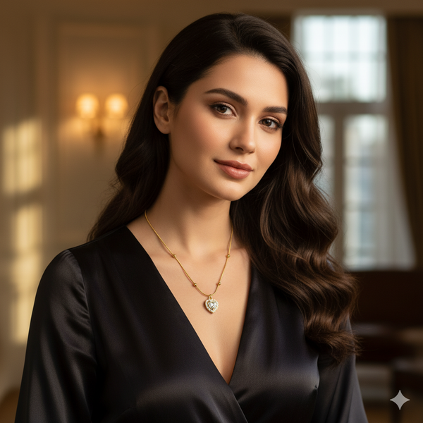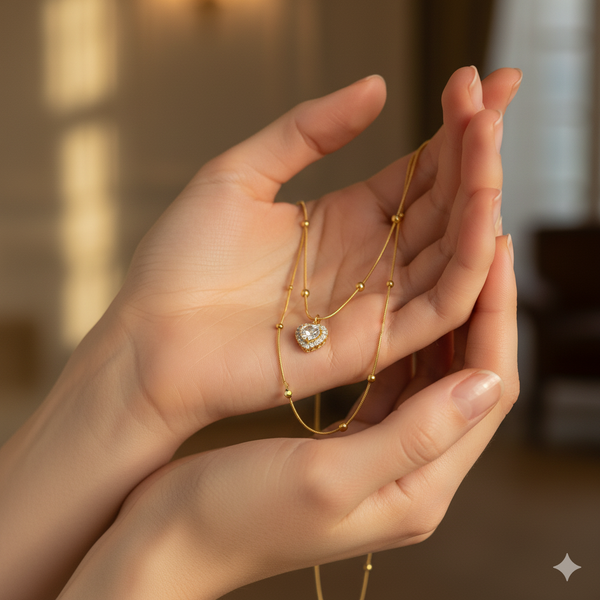 Design: Diamond-studded heart pendant on a dual-layered chain