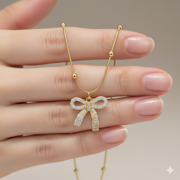 Elevate your jewelry collection with this charming bow pendant necklace, designed to make you shine wherever you go.