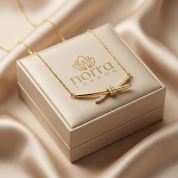 Gold Plated Tiffany Knot Pendant is a graceful expression of connection and timeless elegance. Featuring a sleek knot-inspired bar design accented with subtle sparkle, this pendant brings a refined charm that feels modern yet classic. The smooth gold plated finish adds a warm glow, making it an effortless standout for everyday styling.