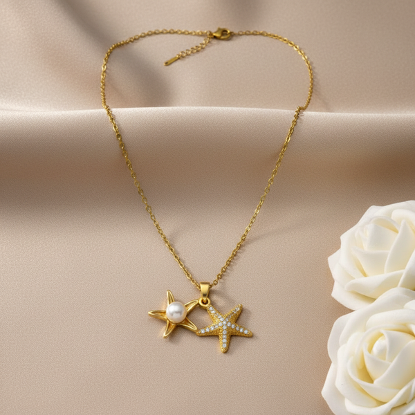 Premium gold‑plated starfish pendant necklace with twin charms.
